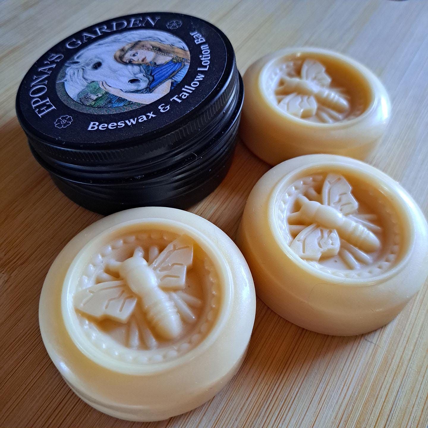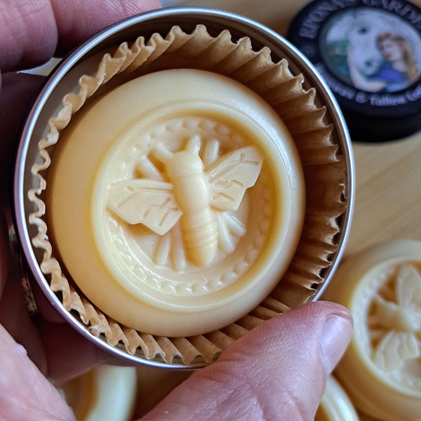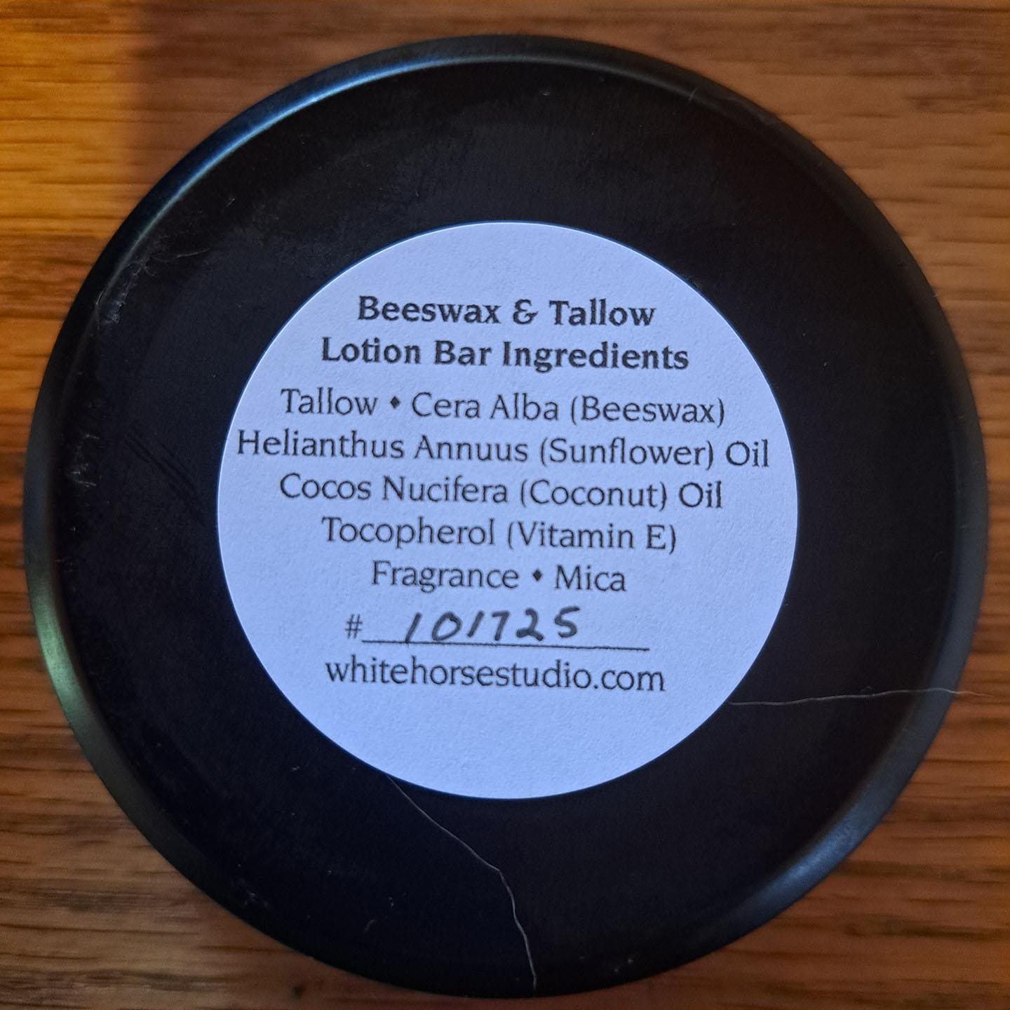 Silky smooth and luxurious, handcrafted with tallow, beeswax, sunflower and coconut oil. Breathe in the rich scent of honey and vanilla as you rub the bar on your hands. Allow the warmth of your skin to slightly melt the surface of the bar and deliver these rich ingredients to gently soften and moisturize. Handcrafted in small batches with a classic honeybee design, a golden shimmer, and packaged in a sleek black tin with a paper liner.